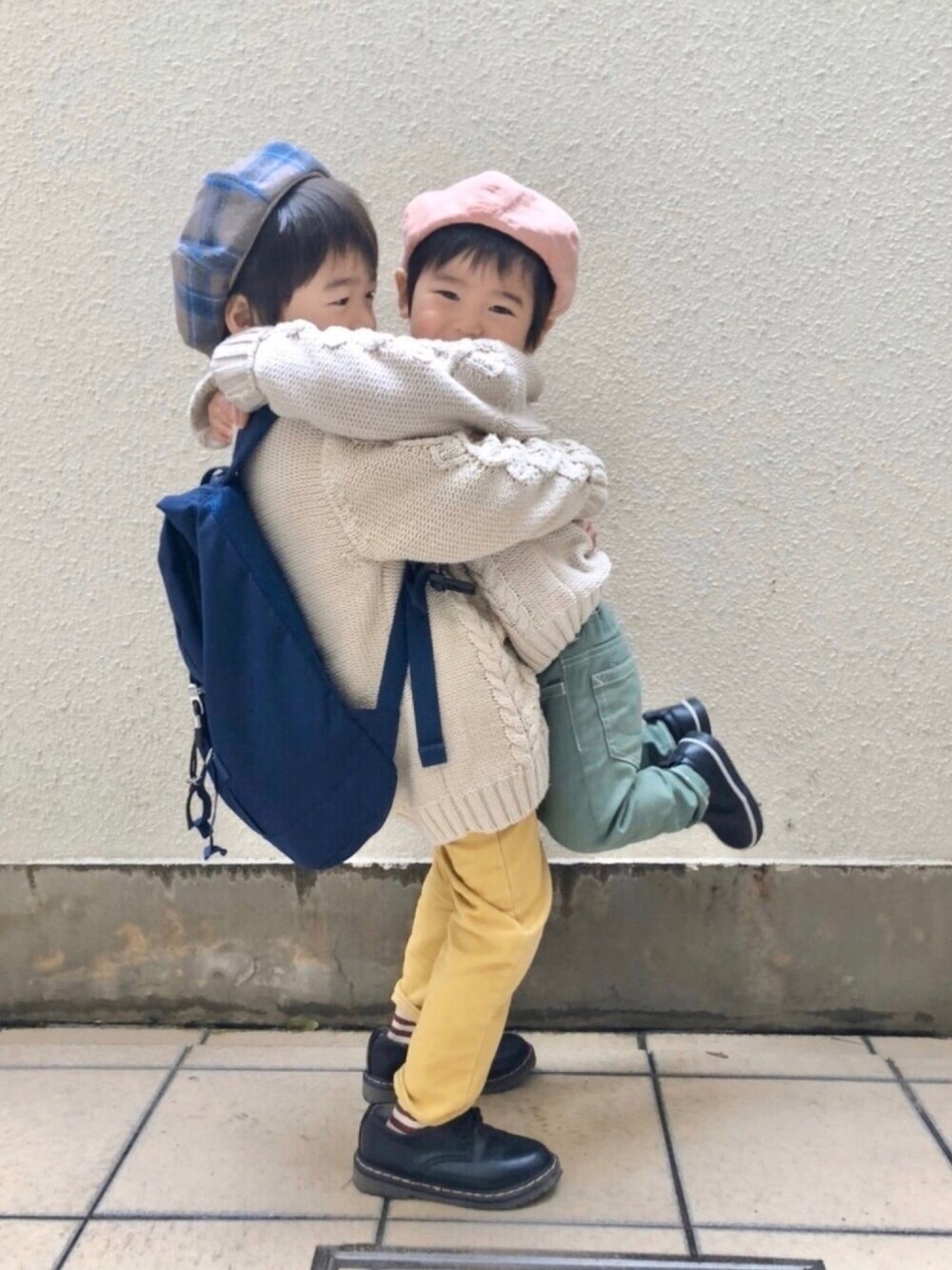 題名: 桜もちを抱っこする力持ち #桜もちコーデフェス2020 に参加させてください💕💕 主催者様、桜もちなのは片方だけなのですがよろしくお願いします🥺 去年も参加させていただいたフェス🌸 前回は全然ピンクも緑も無かったので今年は事前準備してました😆 お兄ちゃんとはベレー帽とお揃いカーデとパステルパンツでリンクしてみたよ✨ Special thanks 写真補正加工:まいちゃん(よー氏ママ)❤️