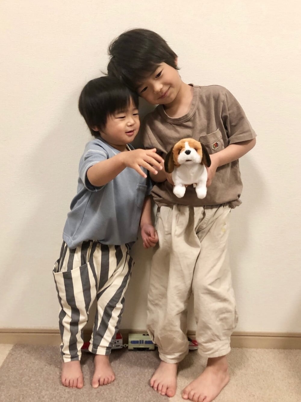 可愛いワンちゃん❤️ 奏さんがおチビちゃんの頃から我が家にいるワンコたん🐶 こんな愛らしいワンコたんなのに… けいけいに怖がられております😂 ビビリ姿を見たい方は小窓かインスタへどうぞ🤣 けいけいのトップスは イオンのワッフルTシャツ!値段も安いしなかなか良い色が揃ってる👏 パンツはバースデの新しいブランド manina(マニーナ)の物です❤️ これもだし、他のもデザインが可愛くて惹かれてしまう…😍 テータテートに続きハマりそうな予感よw 奏さんのトップスは この渋さがなかなかのお気に入りなの❤️良い色💕 ワンピもあったから160色違いで買えば私も着れたなぁ〜とか思っております😆 今日は子連れ出社の予定☔️ さぁどうなる事やら〜〜 また報告しますっ😅
