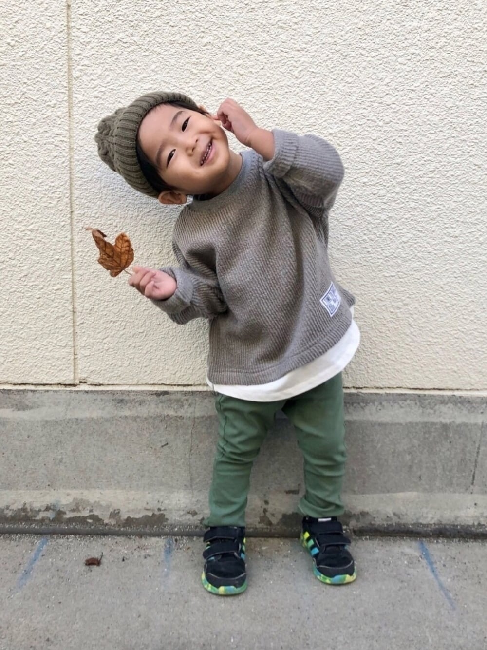 グリーンフェス❶❶ 🍀凄い!もう11回目なのね🍀 GUのレイヤード風のトップスにグリーンのカラーパンツとニット帽を! スニーカーにもグリーン入れてみました😆🌱 全部違う感じのグリーンになっちゃった🌱🌱 そらのすけ君ママ、出遅れましたが、どうぞよろしくお願いします💕 このグリーンのパンツ、90センチなんだけど、この前、保育園にお迎え行ったら、奏さんが間違えて着てたの🤣彼のジャストサイズは120センチ。よく履けるなぁ(小窓) 前回は凹みまくりアピールな投稿で失礼しました🙏 あの後、財布が見つかったと警察から連絡があり、現金は全部抜かれていたものの、他の物は、ほぼほぼ返ってきました😭 これからは気をつけなければ💦 奏さんもハゲ部分に毛穴が出てきて、ちょっと安心してます😆