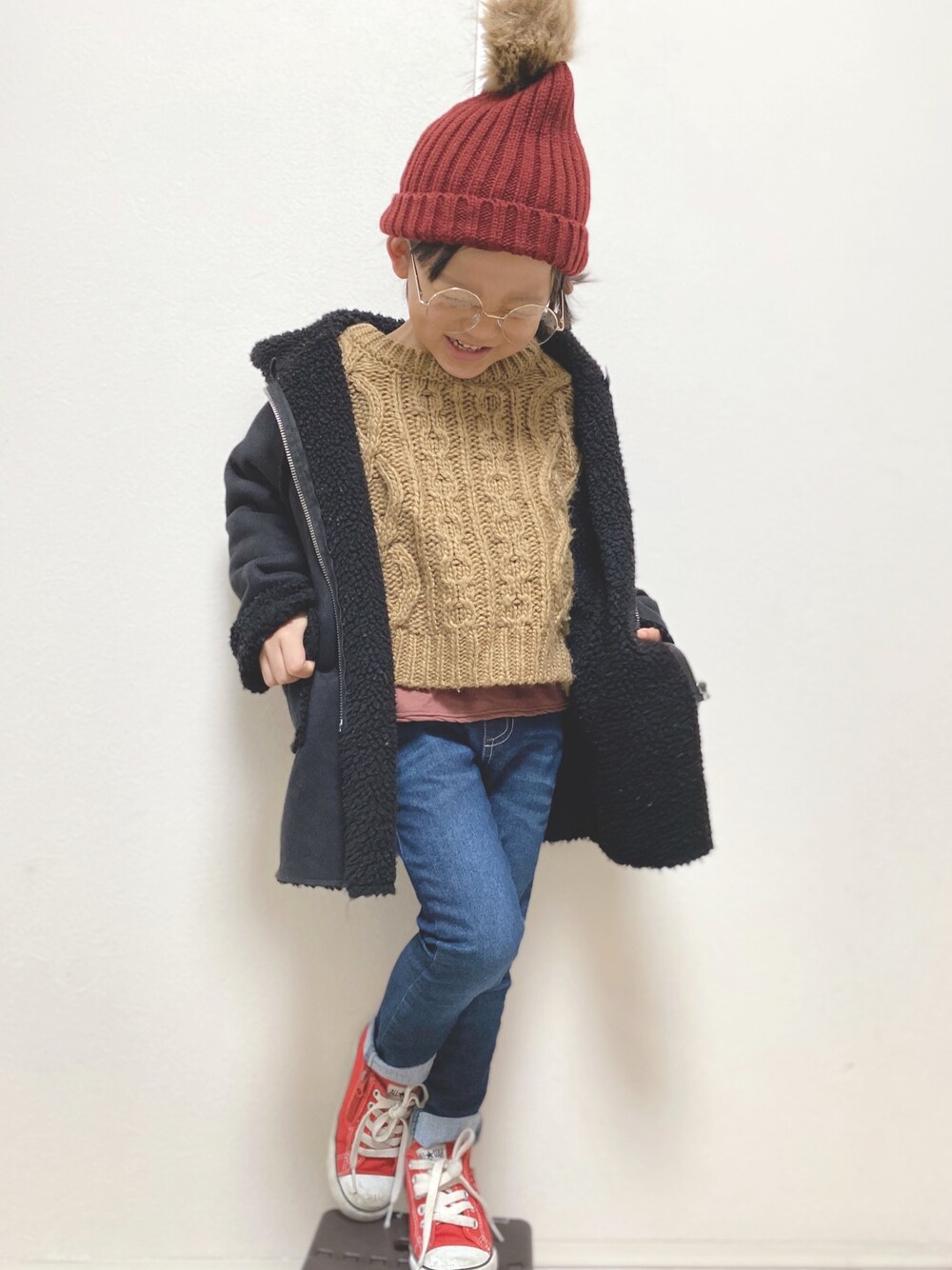 見て下さってありがとうございます☺︎♡☻ いいね♡&フォルダin🗂とっても嬉しいです🙇♀️✨✨ どうぞ気軽にフォローして下さい🥰❤️ #冬アウター着回しチャレンジ 最終日は爆笑picで締めまーす🤣❤️ フェイクムートン3日目は、ティピーのケーブルニットと赤コンバースで🧥👞