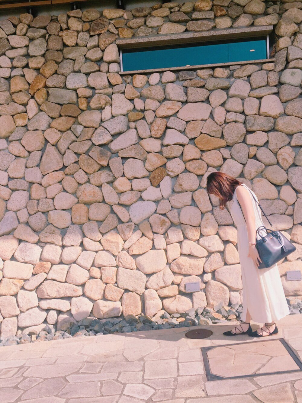 白のワンピースにレースアップシューズで シンプルコーデ。