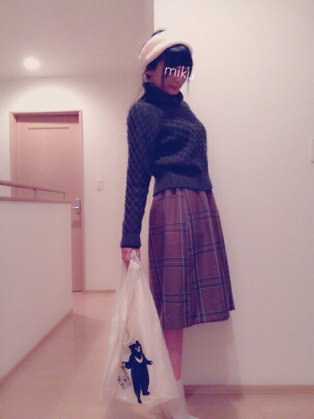 mikuのニット/セーター「ダイヤ柄タートルプルオーバー」を使ったコーディネート