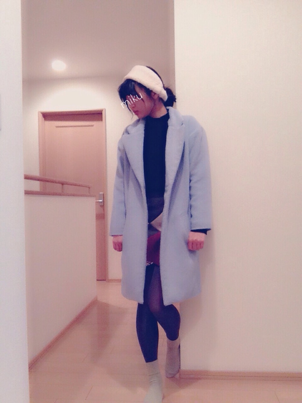 冬◎ ファーのヘアバンドかわいい肌触り◎ 寒くてタイツに靴下 最近はグレーのタイツがスキ ニットはユニクロのヒートテックニットであったか〜