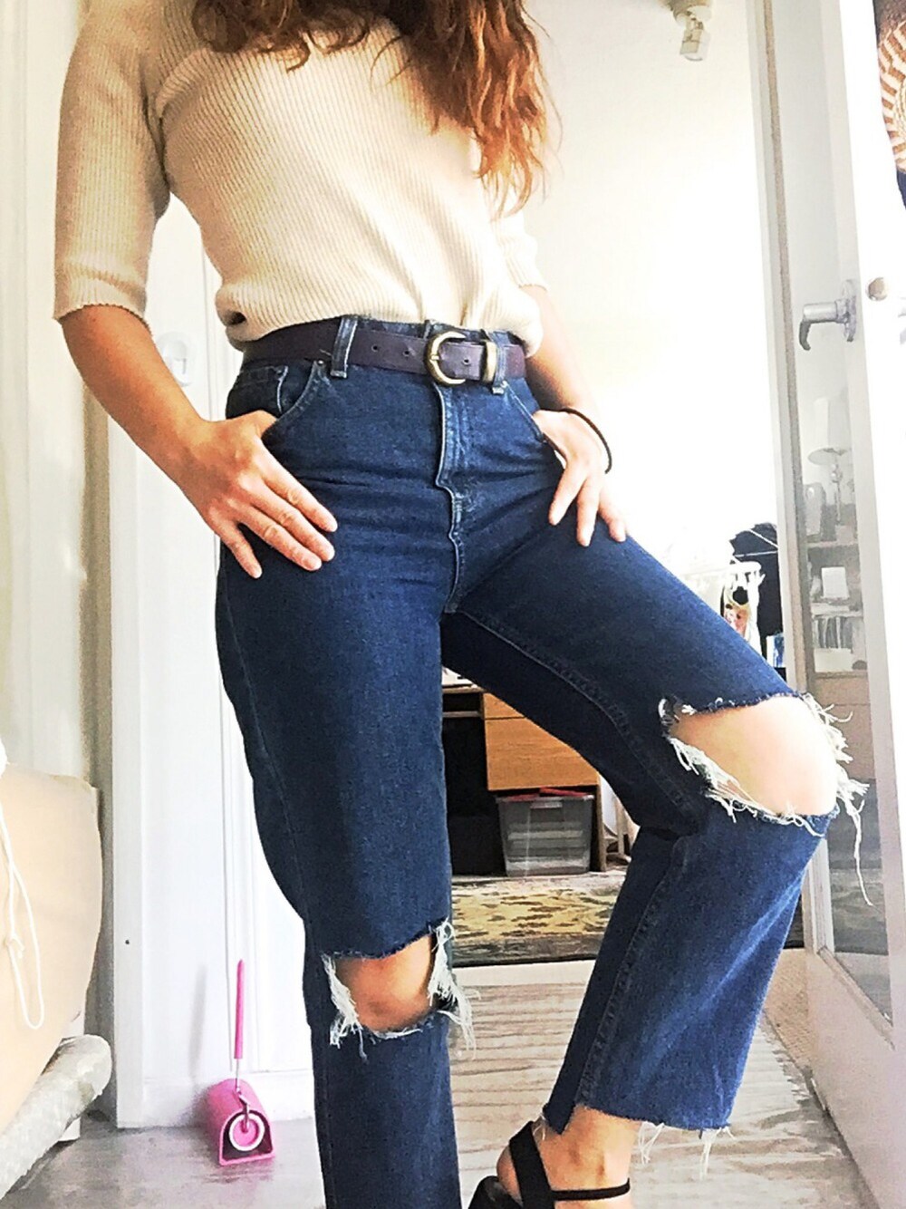 ノーマルのデニムを自分でアレンジしました👄裾の丈も前後の長さが違うのがポイント🖖💕💕