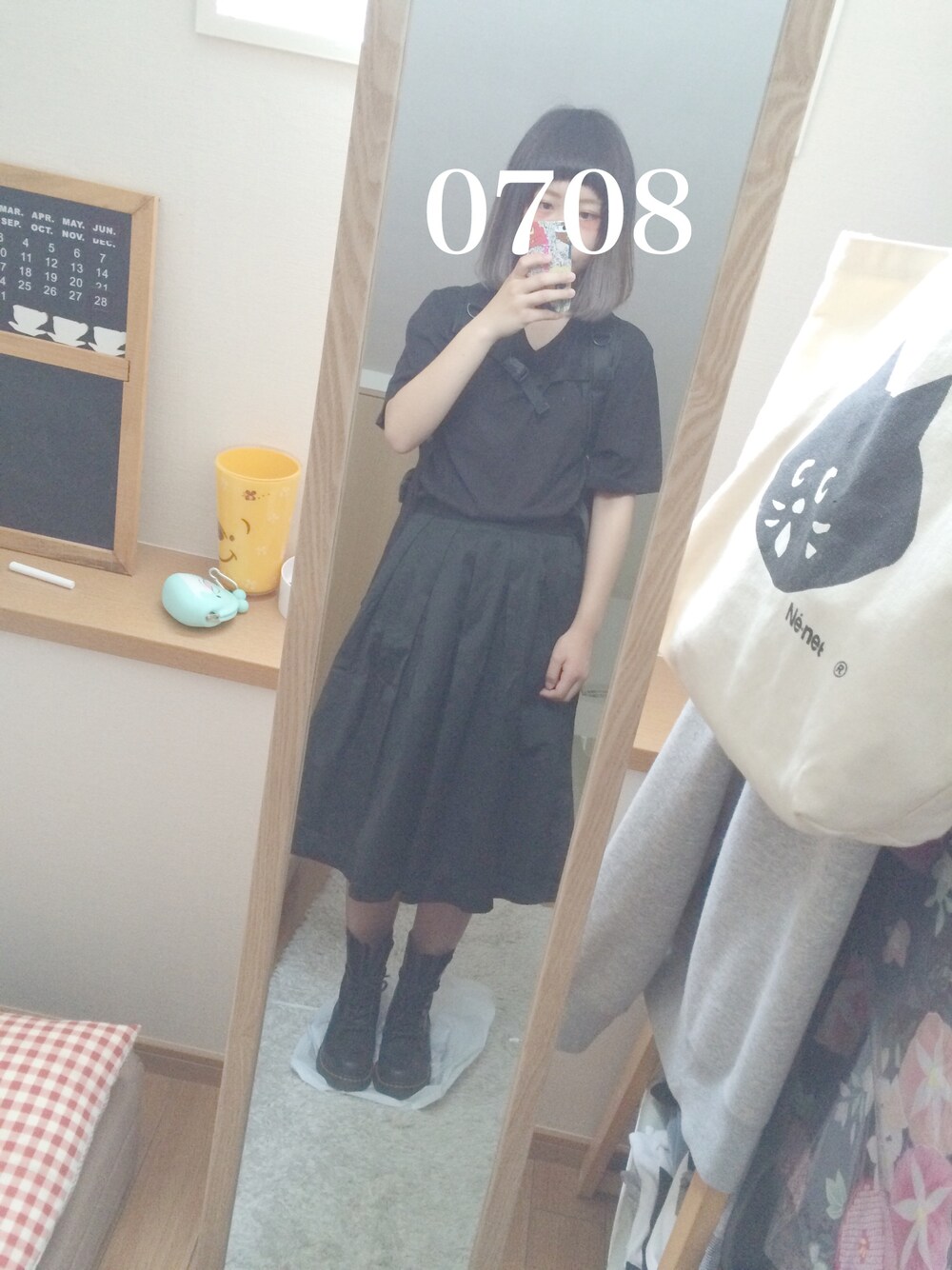 オールブラックコーデ* ユニクロとGUでプチプラ◯ 雨が降りそうだから マーチンのレインブーツで。