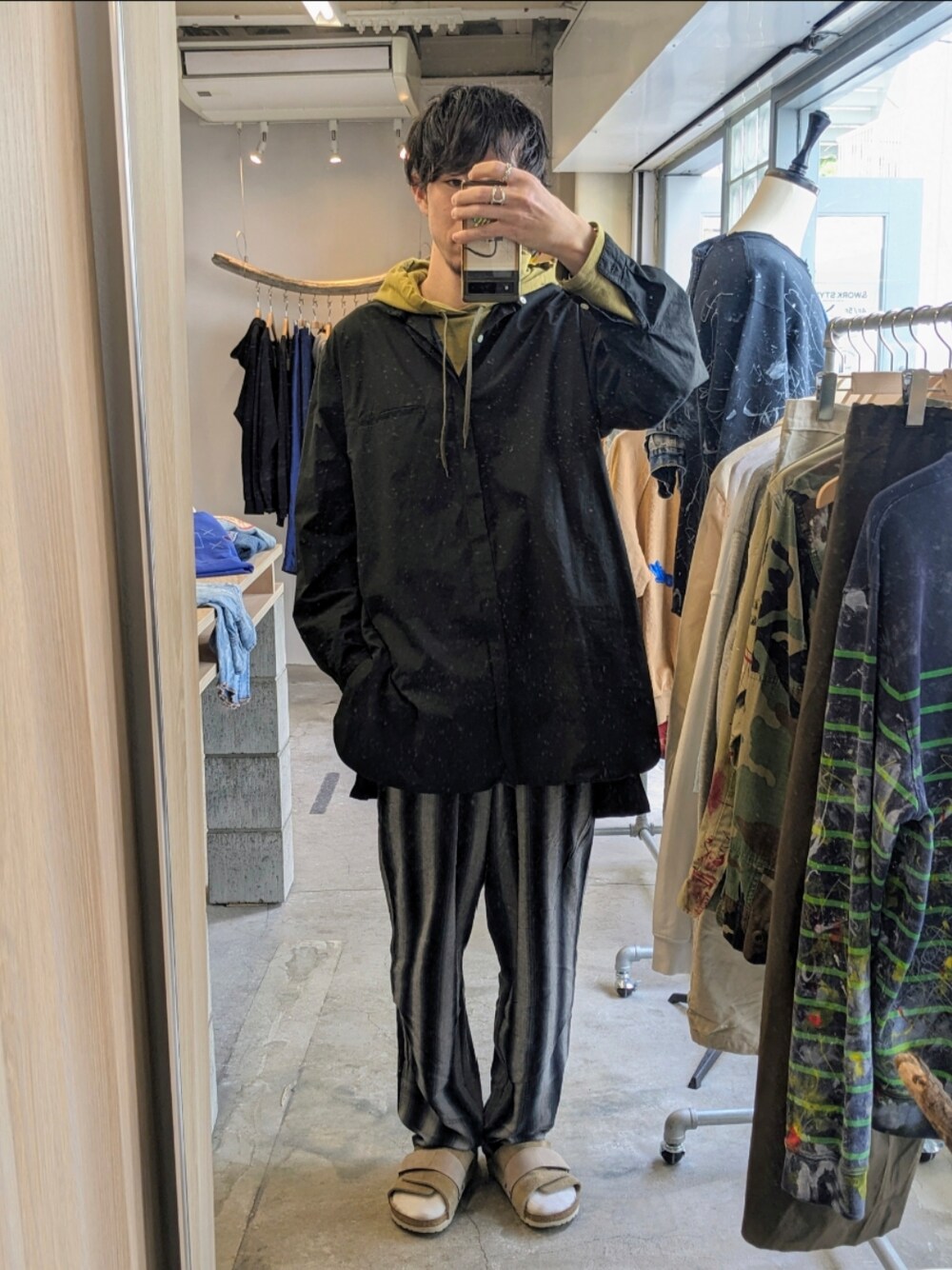 【スタイリング日記】 4/11(木)晴れ ロング丈って2周くらいしてやっぱりいいよね。 のシャツ。 SHIRT #edifice BOTTOM #sevenbyseven SHOES #birkenstock #古着 #下北沢 #vintage #shimokitazawa #スタイリング日記