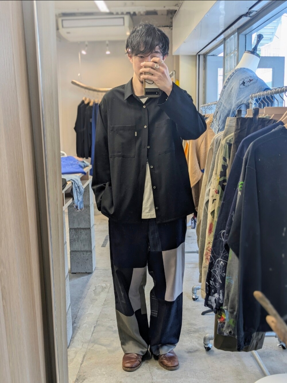 【スタイリング日記】 4/12(金)雨→曇り ヴィンテージ生地のパッチワークが好き。 1点物って言葉に惹かれがち。 SHIRT #graphpaper BOTTOM #sevenbyseven SHOES #paraboot #古着 #下北沢 #vintage #shimokitazawa #スタイリング日記