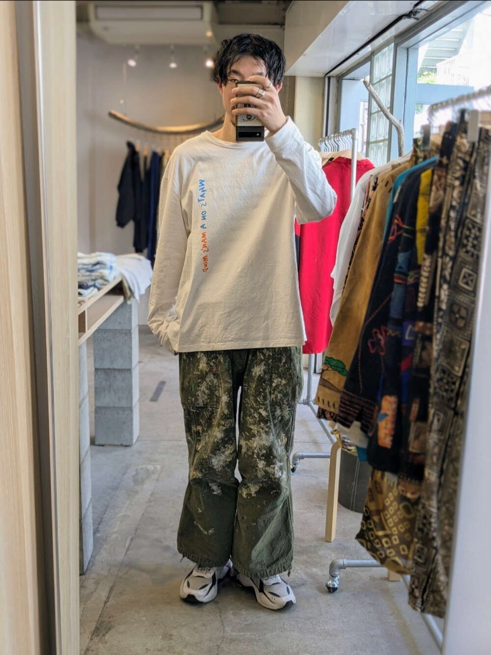 【スタイリング日記】 4/19(金)晴れ 汚れとかボロとかってなんでやめられないんだろう、、、。 TEE #laughandbe BOTTOM #herill SHOES #puma #古着 #下北沢 #vintage #shimokitazawa #スタイリング日記