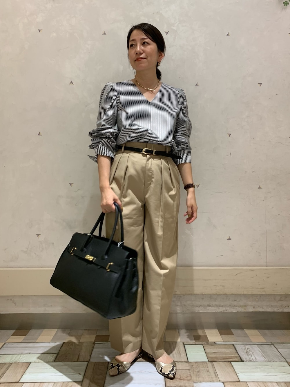 Ishikawa(ノーリーズソフィーアトレ恵比寿店)のシャツ/ブラウス「ストライプVネックシャツブラウス」を使ったコーディネート