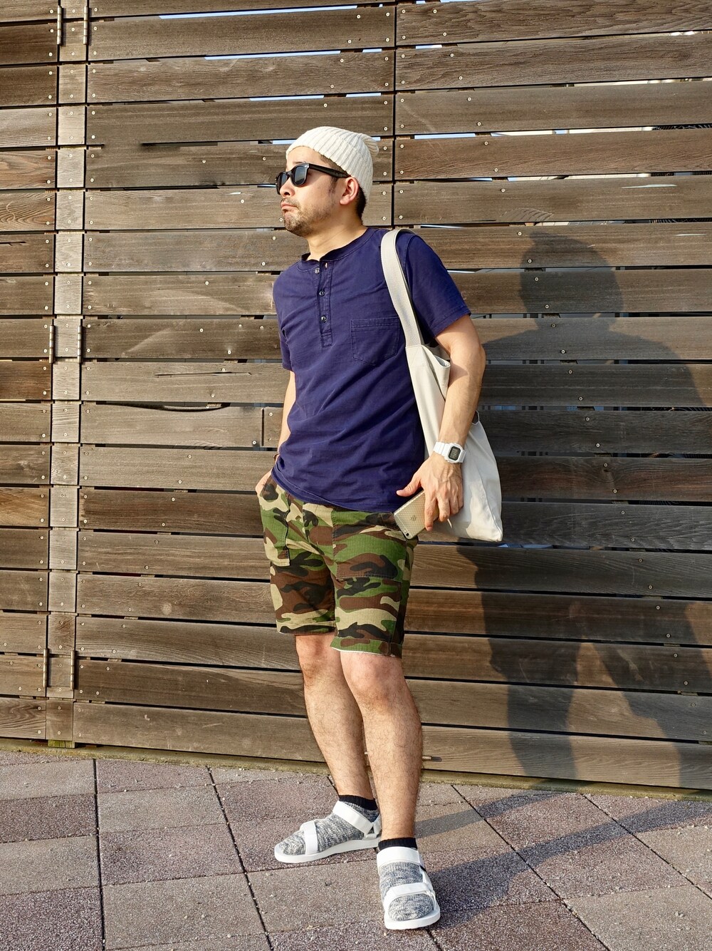 7月に集めたアイテムで夏のラフなコーディネート。 サンダルは本当にらくちん。でも、甲が日焼けするのでソックスは必須です。