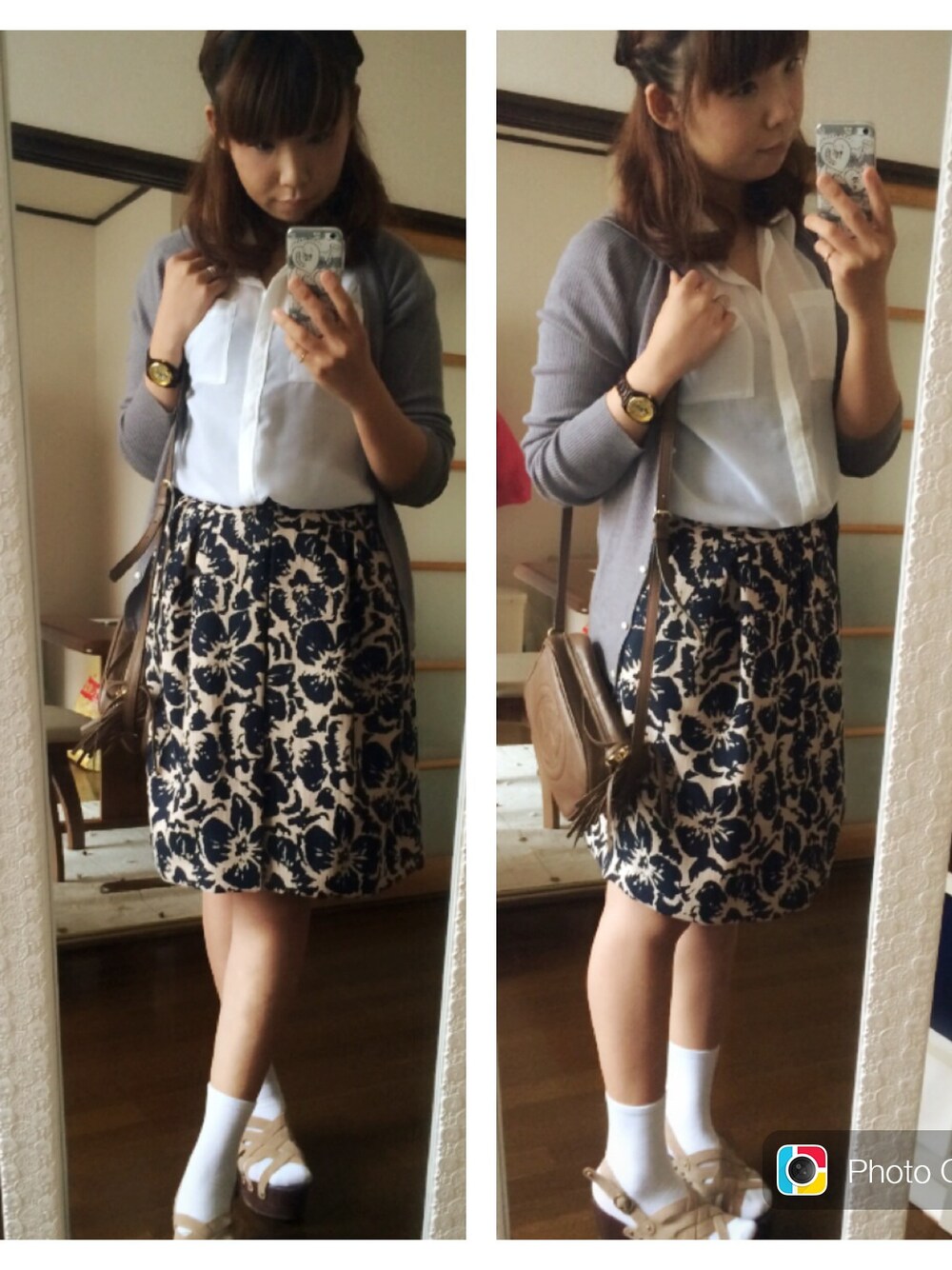 shirt/BEAMS skirt/BEAMS bag/GUCCI sandal/Heaher 雨降りで涼しいので カーディガンを羽織りました これからランチ会です !