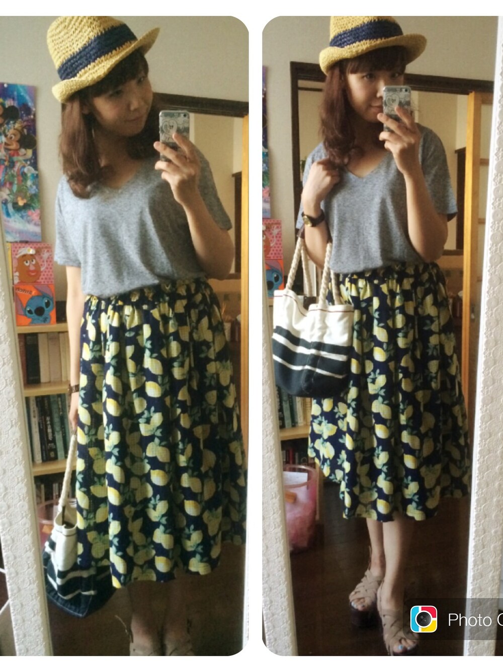 top/H&M skirt/w closet sandal/Heather bag/theory 夏気分な服装。
