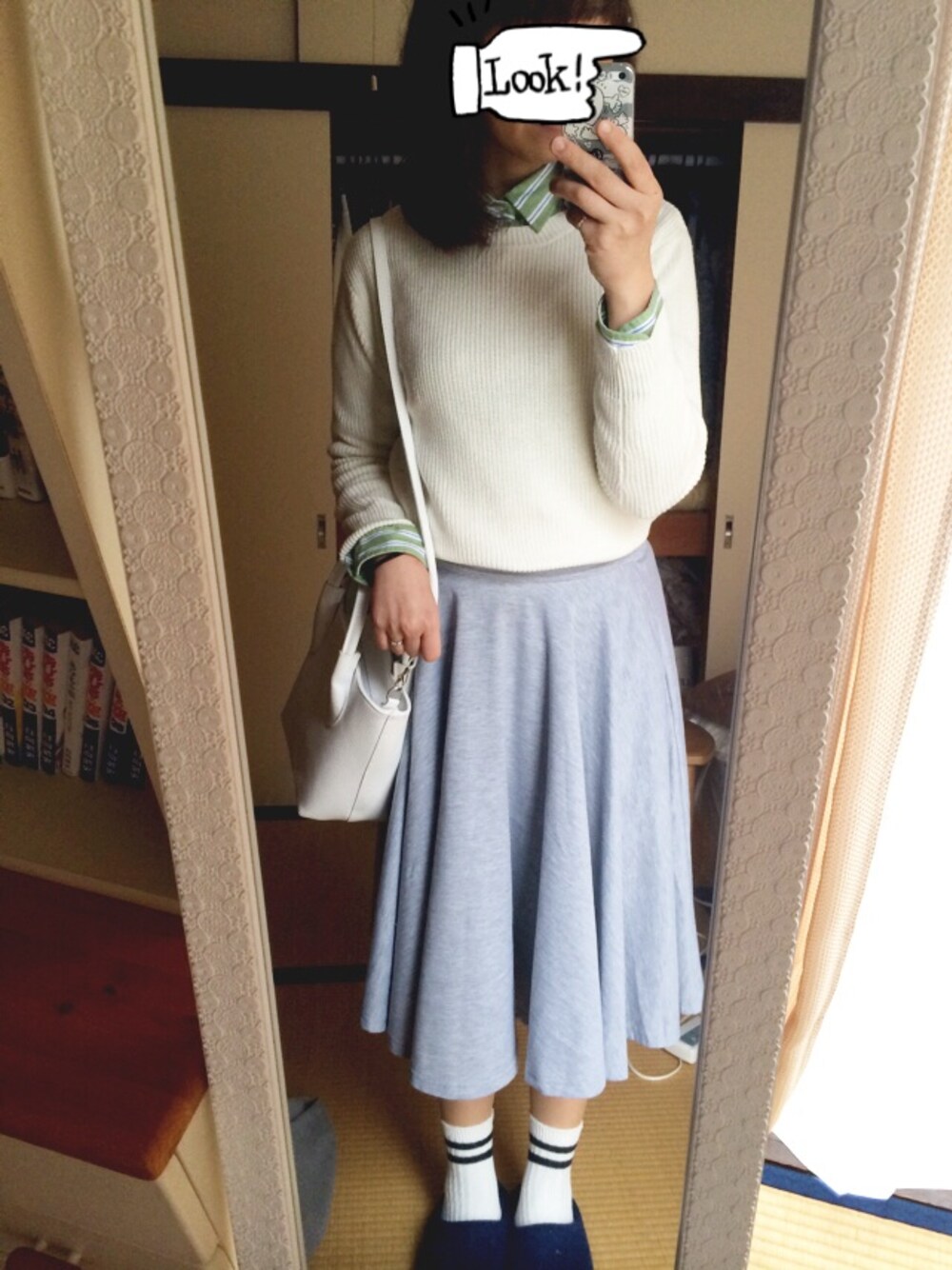 やっと 春コーデ できた ! グレーのフレアスカート お気に入り 。 シャツ/coen ニット/g.u スカート/mystic