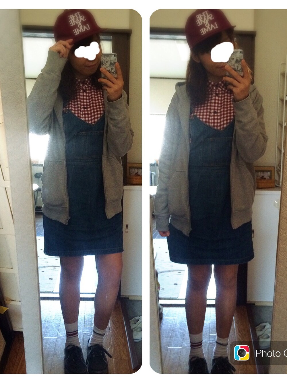 UNIQLOづくし CODE サロペット以外みんなUNIQLO ♡ shirt/UNIQLO cap/UNIQLO parcar/UNIQLO shose/VANS