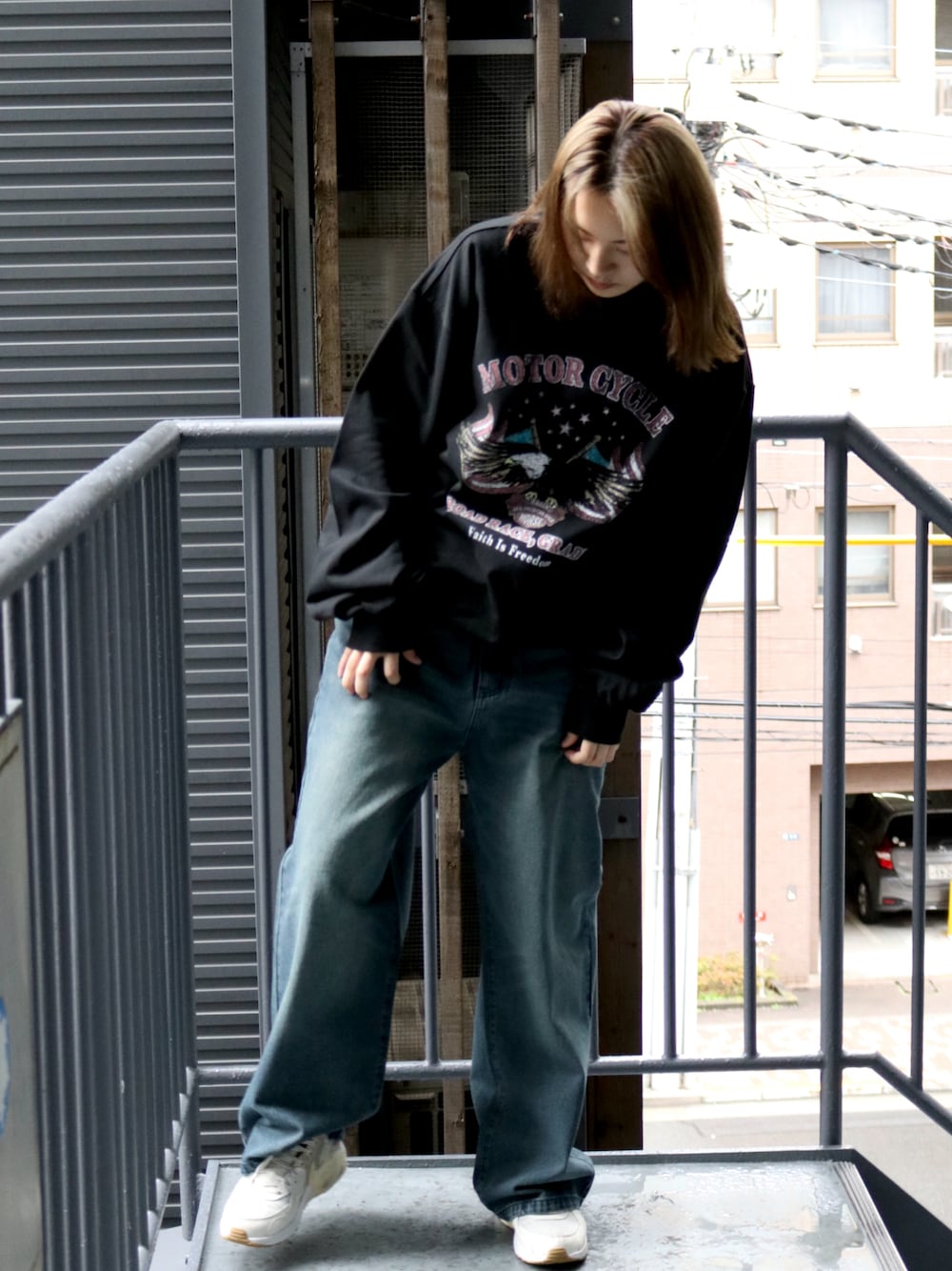 siz(StartingOver)のスウェット「裏毛 先染め プリント クルーネック/トレーナー/スウェット/プルオーバー」を使ったコーディネート