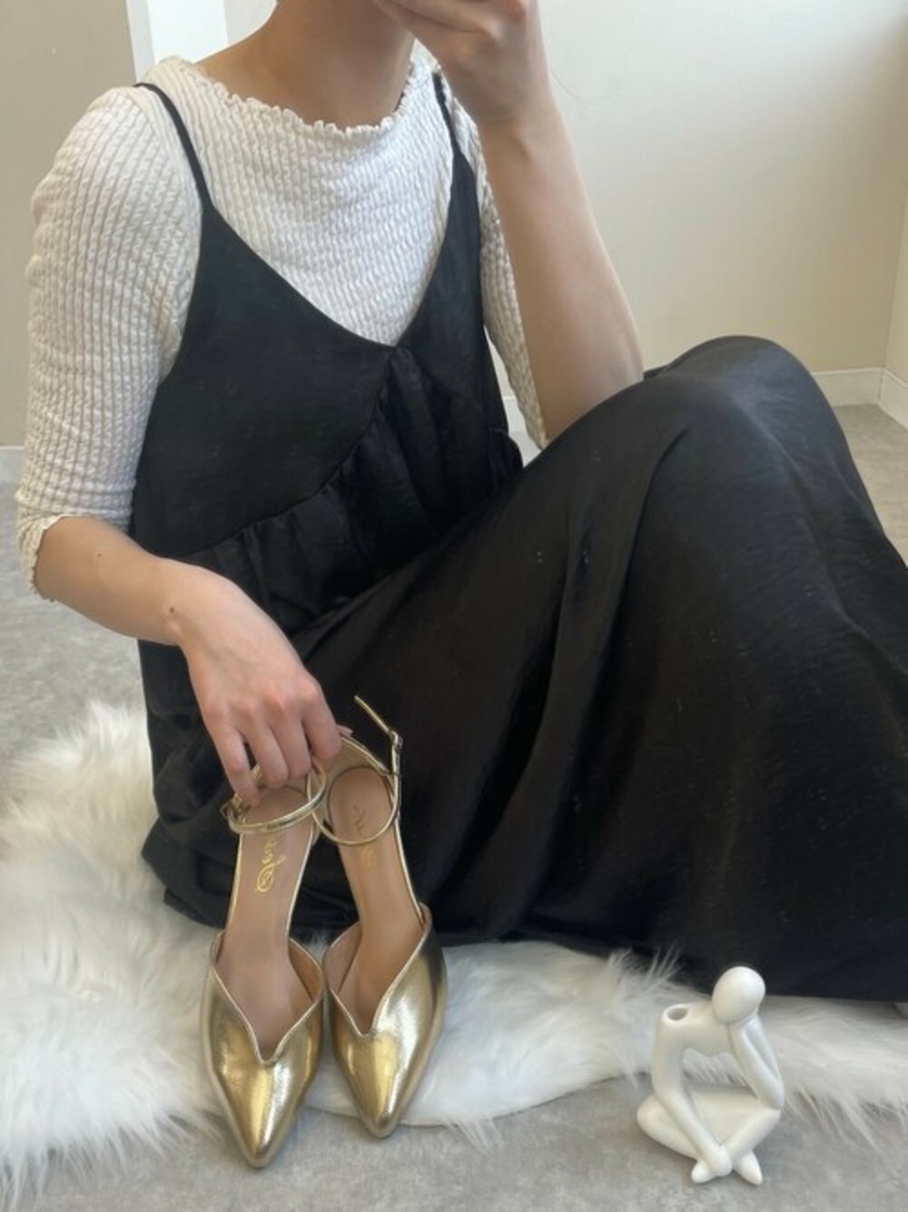靴屋の人(SESTO)のパンプス「キトゥンヒールアンクルストラップパンプス」を使ったコーディネート