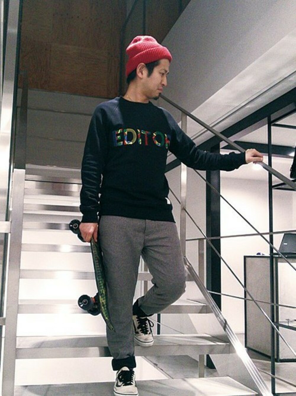 通常カジュアルになりすぎるアイテムをエレガントに仕上げる「EDITOR」。イタリアブランド「BARK」で得た経験とスキルが存分に生かされている、イタリアブランドらしい細身の美しいシルエットに加え、総刺繍で表現されたロゴは高級感も与えます。 ボトムには「CRUNA」のウールテーパードパンツを合わせ、広めにロールアップ+スニーカーでカジュアル感を出しました。 その日の気分次第で、シャツを合わせて綺麗めにしたり、デニムパンツでさらにカジュアルに合わせても素敵です。