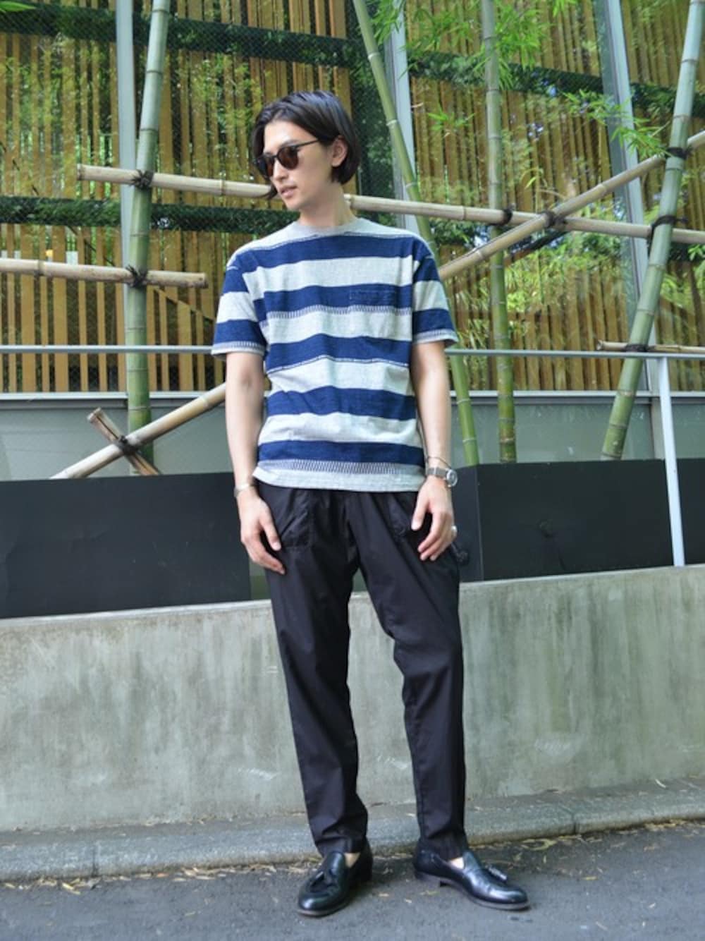 stradaestmasaのTシャツ/カットソー「REMI RELIEF (レミレリーフ) インディゴ 太ボーダー クルーネック」を使ったコーディネート