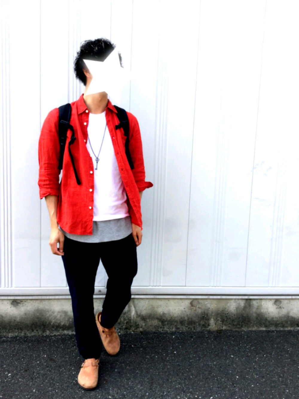 初の外撮り。Brooks BrothersのパックTばかり着ております。