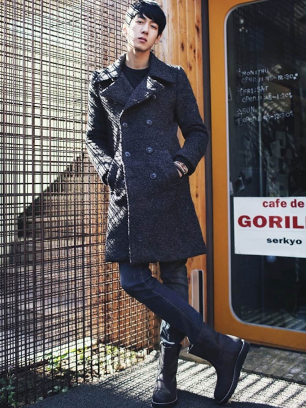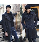 ロング丈のダブルトレンチコートを使ったコーディネートです。 シンプルなデザインなので着まわし力抜群で合わせやすいチャコールグレーです。 フォルムも細身でスタイリッシュなのでスマートに着こなせます。 生地もしっかりしていて高級感があり、丈夫なので使い込んでも安心です。 ブーツインにして大人っぽく、男らしくまとめました。