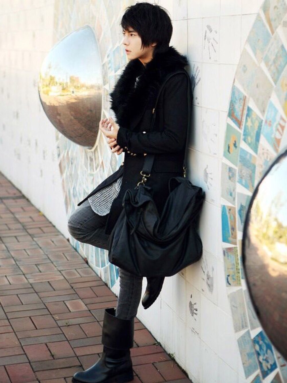 STREAMf-a-mのスタジャン「ロング丈ピーコート★2色★クール★ハイセンス★ファー付き★【送料無料】」を使ったコーディネート