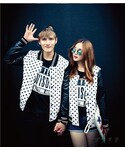 STREAMf-a-mのスタジャン「星(スター)柄★レザー切り替え★スタジャン★2色★ユニセックス・ペアルック★【送料無料】」を使ったコーディネート