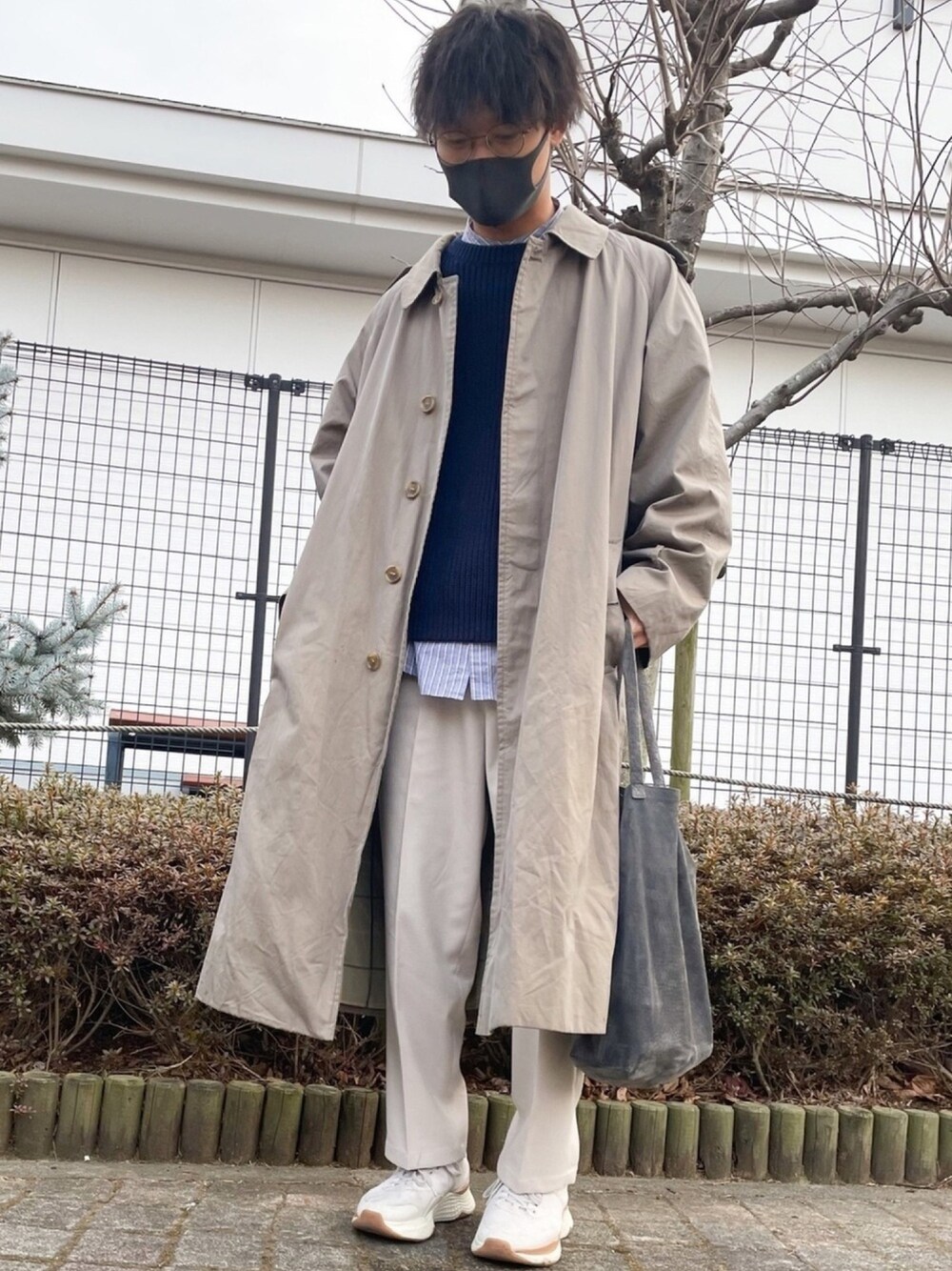 ネイビー×ベージュ Burberry古着のオーバーサイズステンカラーコートの中にネイビーニットを忍ばせました。 丈の長いコート良いですね ニットの下にバンドカラーシャツでレイヤードスタイル! outer : Burberry tops : BEAUTY&YOUTH M inner : LIDNM M pants : WYM LIDNM S shoes : LACOSTE 26.5 bag : Hender Scheme