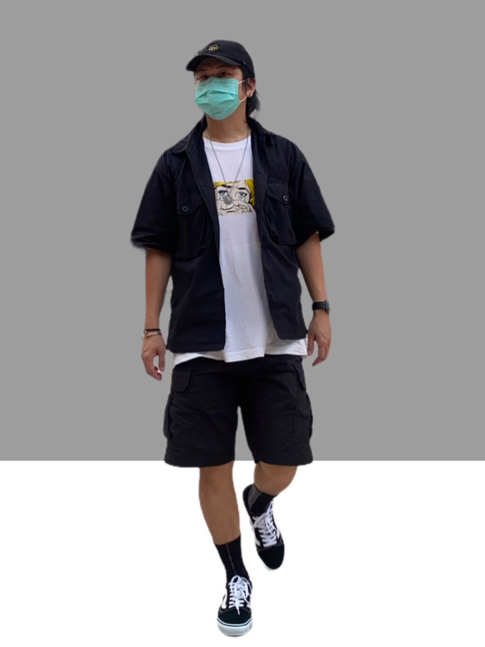 Cap:47Brand x Fragment x Pokémon Top:GU T-shirt:Uniqlo x Dface Pants: Uniqlo Sneakers :Vans