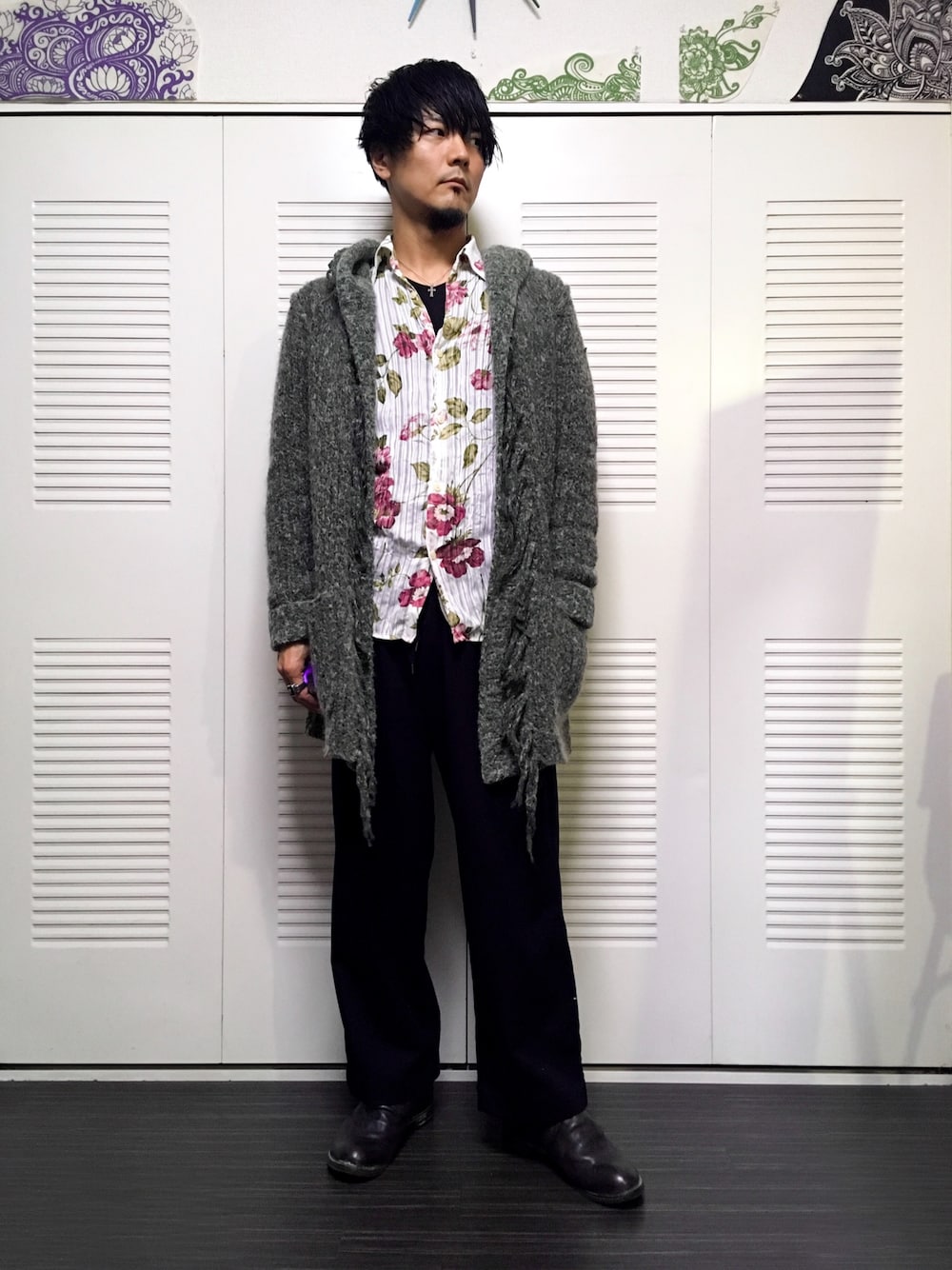 大昔に買ったトルネードの花柄シャツを引っ張り出してきました。 昨日は寒かったのでepisode NO のニットガウンコートを合わせてみました。