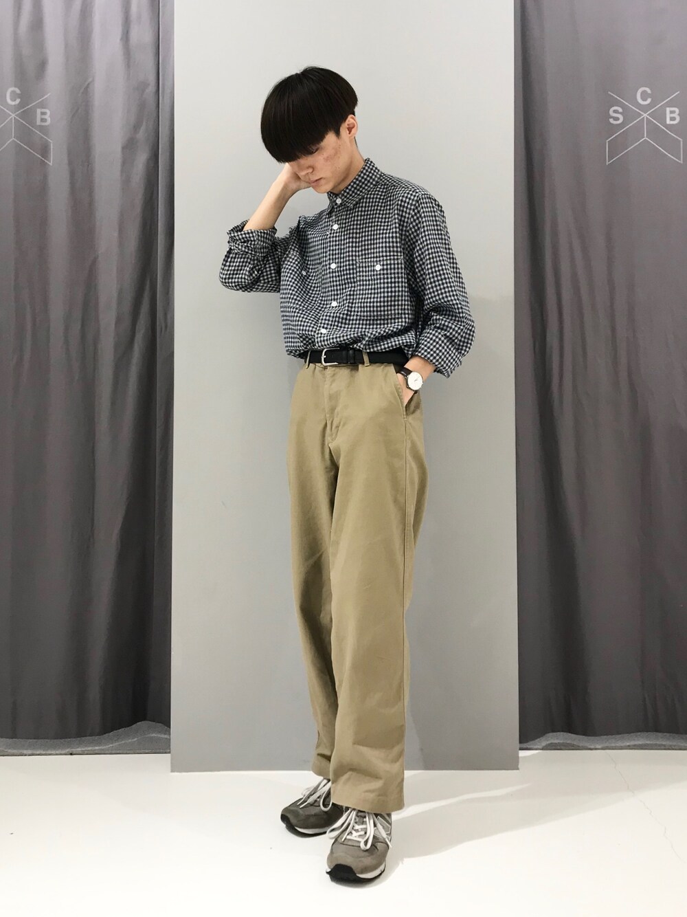 深みのくすみカラーとチェック柄でこなれ感を🕰 タックインによって年代も感じられるコーディネートに🙋♂️