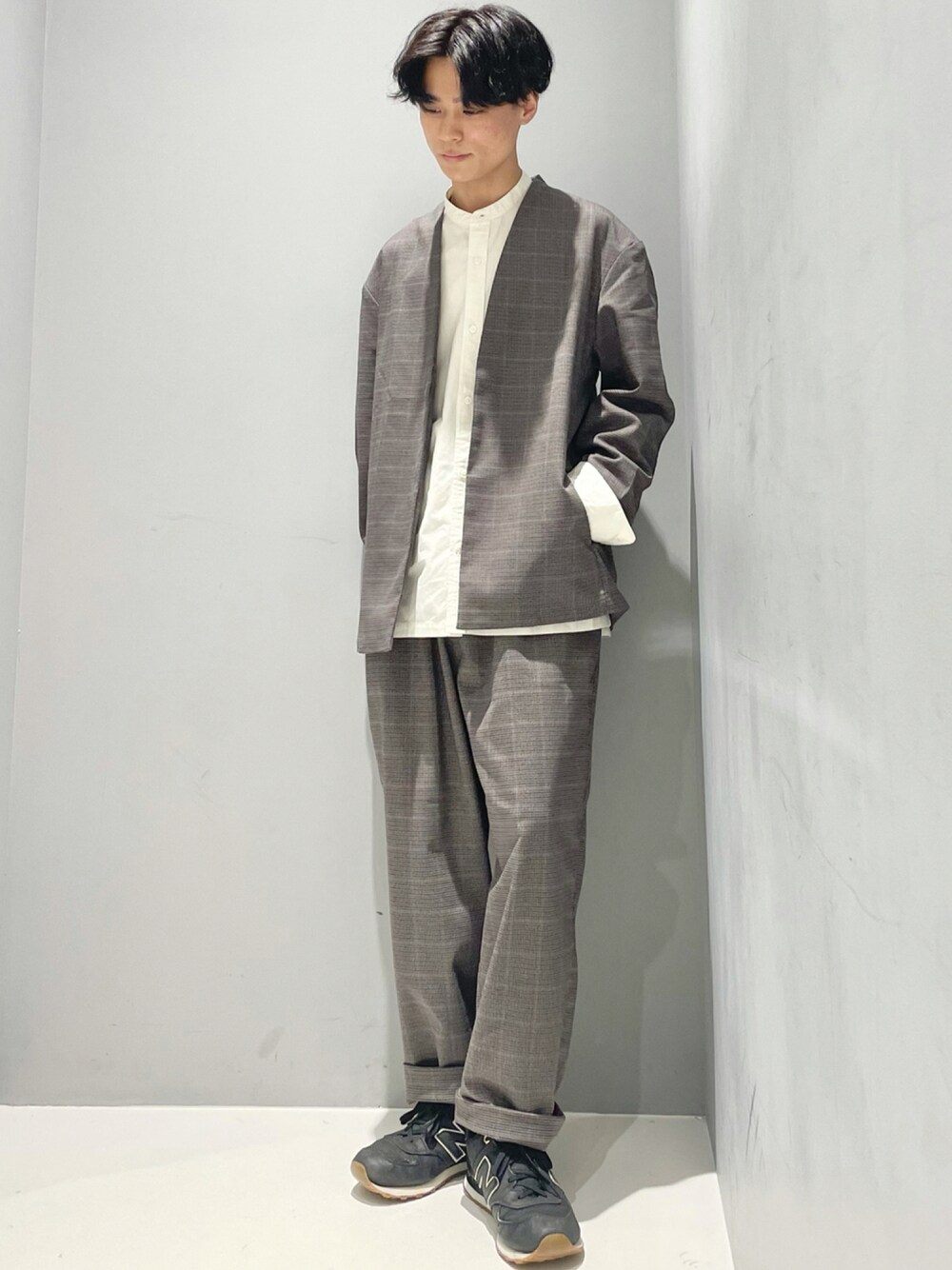 秋のセットアップスタイル 程よいチェック柄で、大人コーデが作れるセットアップです🍁 スニーカーと合わせてカジュアルダウンさせました!