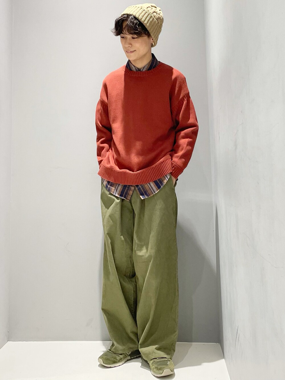 ニット帽を被るだけで冬らしいコーデができますよね⛄️ カラーニットとシャツのレイヤードで、こなれたコーデにしてみました!