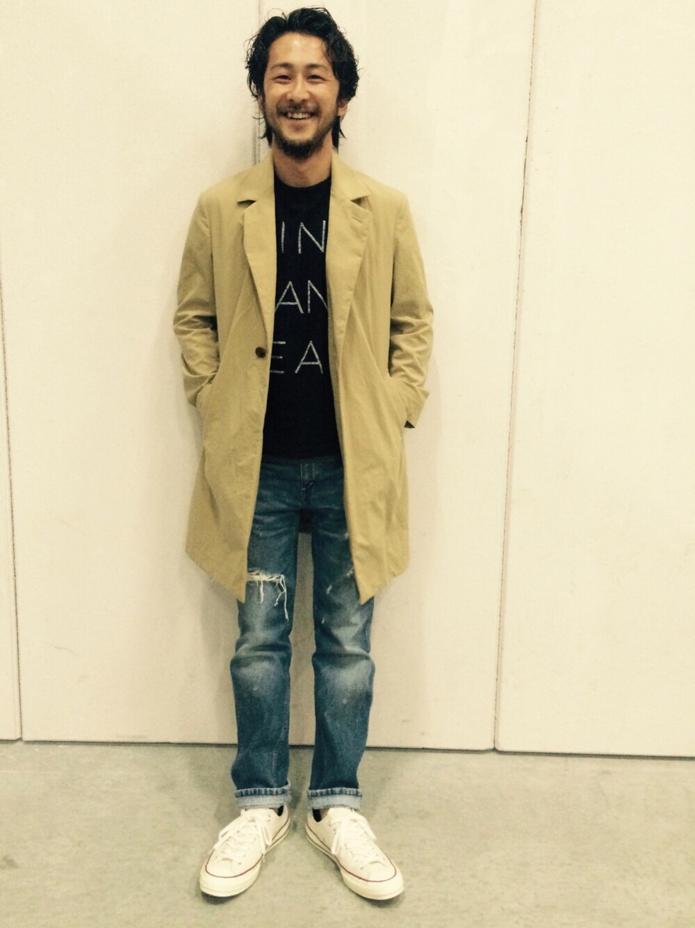 まつたつのステンカラーコート「<Steven Alan> NYLON OXFORD WRAP COAT/コート◆」を使ったコーディネート