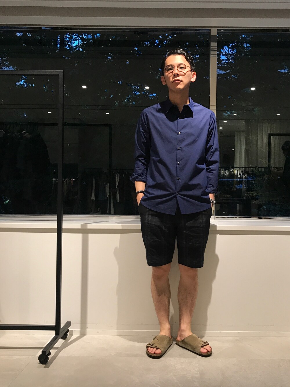 ショーツの時は長袖シャツを合わせるのが気分です。 このシャツはポケットも付いていて何かと便利。