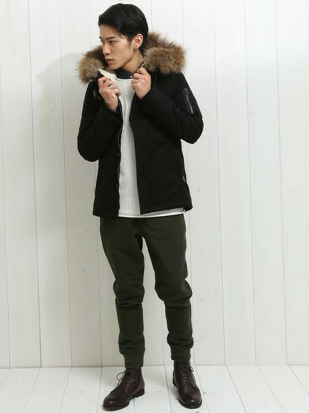 ショート丈でブルゾン感覚のモッズはインナーのレイヤードやボトムのシルエットで遊びを効かせてみました。