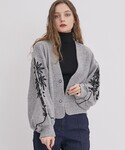 LOKITHO×STUDIOUSの限定カーディガンは、ショート丈とボリューム袖のバランスがキュンとくるアイテム!首元も女性らしい開きなので、デコルテを見せて色っぽく着るのが気分です。マーメイドシルエットのスカートと合わせて大人っぽいフェミニンコーデにしてみました。