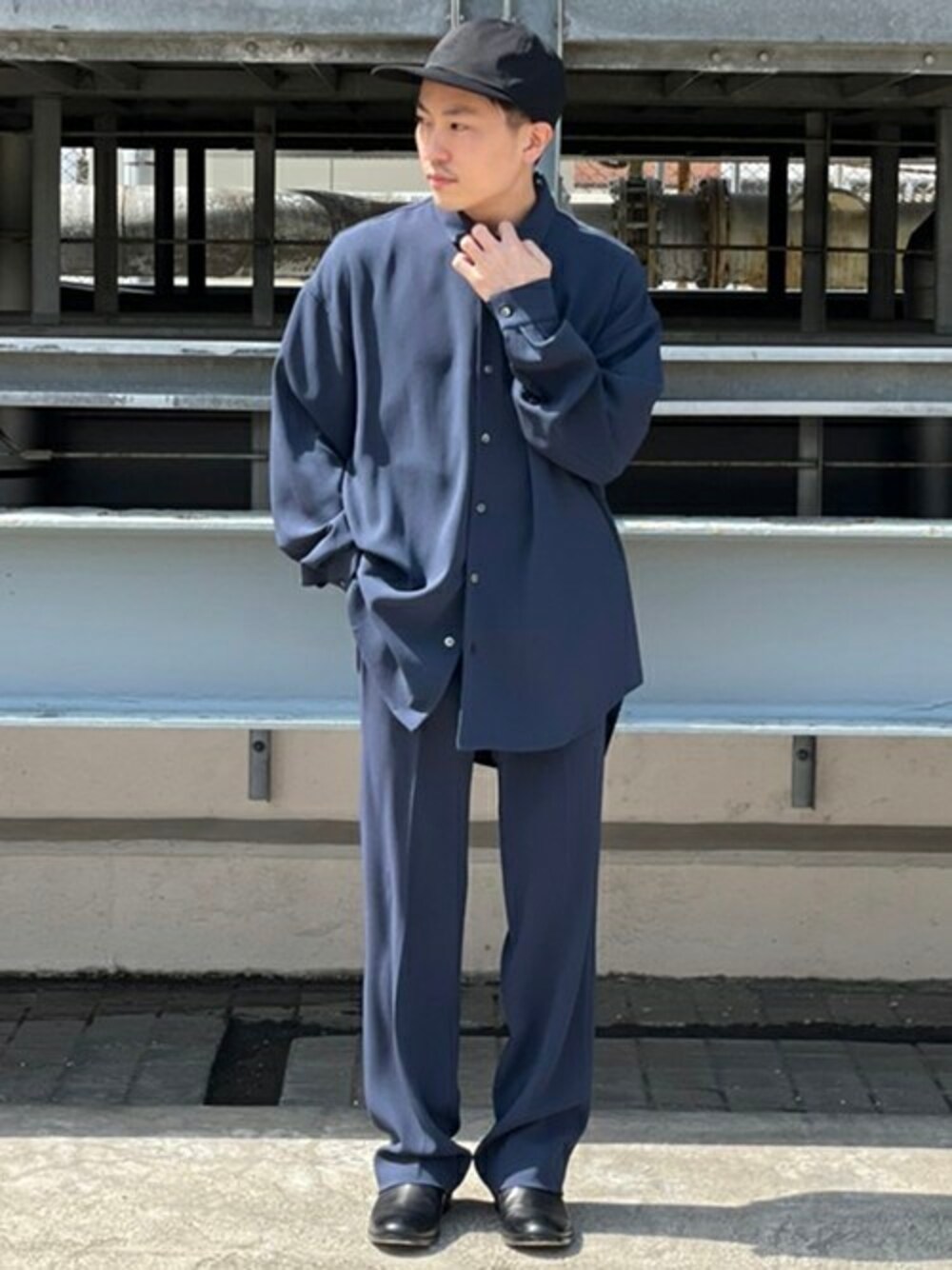 STUDIOUS MENS(STUDIOUS MENS)のスラックス「STUDIOUS別注 GEORGETTE STRAIGHT SLACKS」を使ったコーディネート