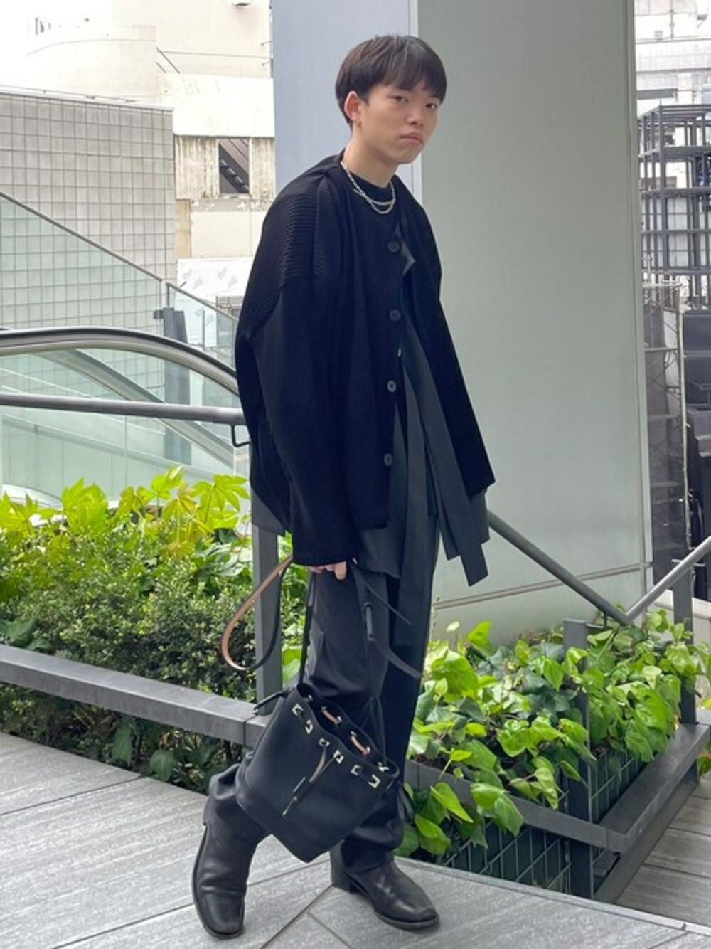 STUDIOUS MENS(STUDIOUS MENS)のノーカラージャケット「CRYSTAL PLEATS JACKET」を使ったコーディネート
