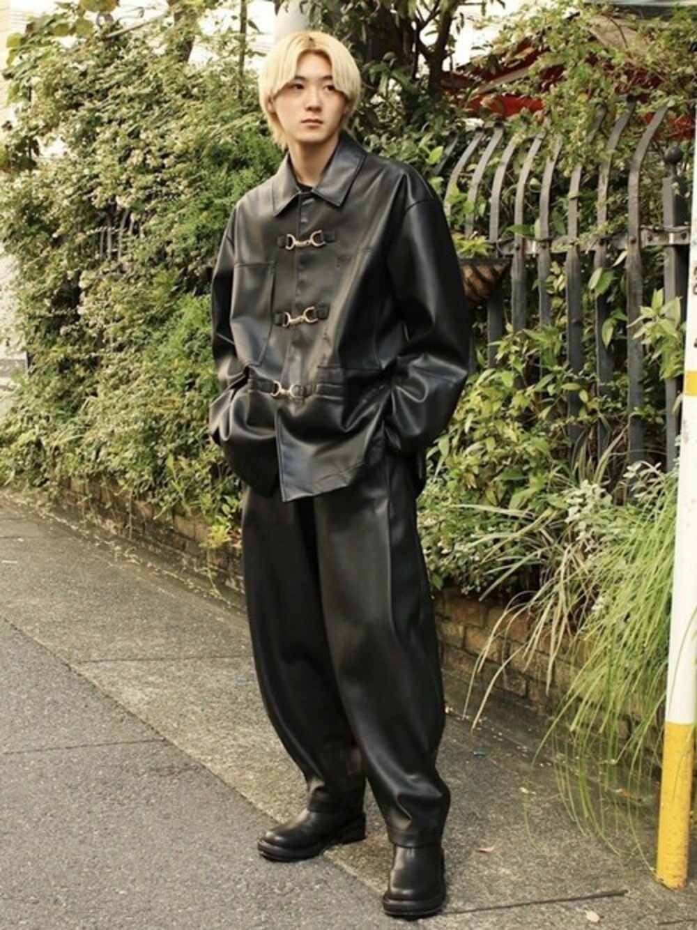 STUDIOUS MENS(STUDIOUS MENS)のその他アウター「Vegan Leather Horsebit Jacket」を使ったコーディネート