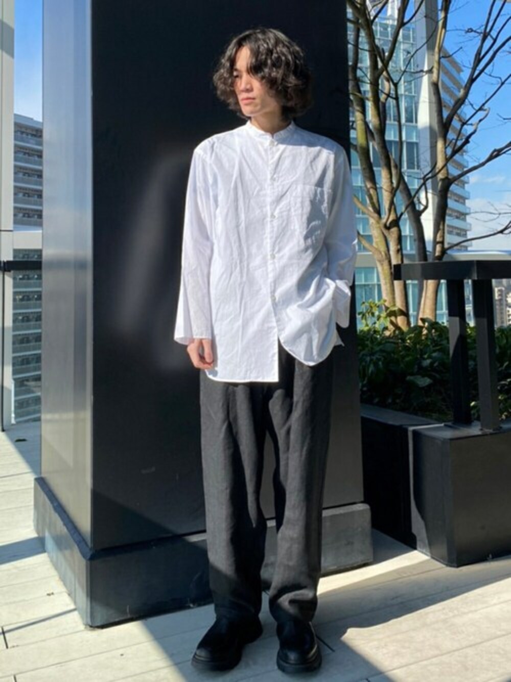 STUDIOUS MENS(STUDIOUS MENS)のシャツ/ブラウス「【blurhms/ブラームス】Chambray Stand Collar Cuffless Shirt」を使ったコーディネート