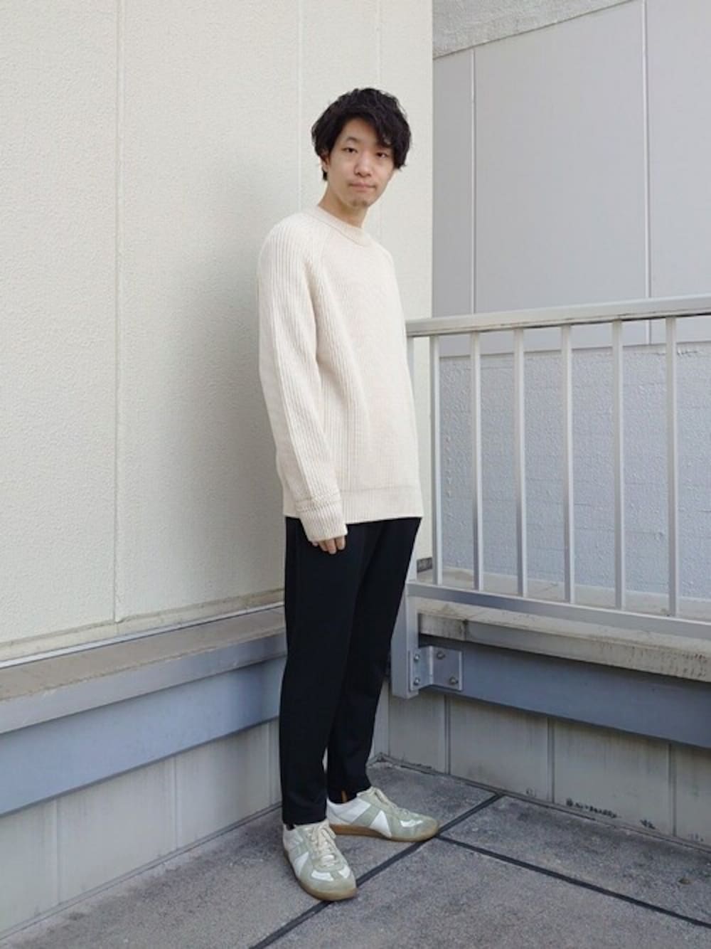 コットン×アクリルの素材なので春先では1枚で。 ミドルゲージの少し厚みのある仕上がりなので冬はコートのインナーとして。 クリーンな色味の非常に使い易い逸品です。
