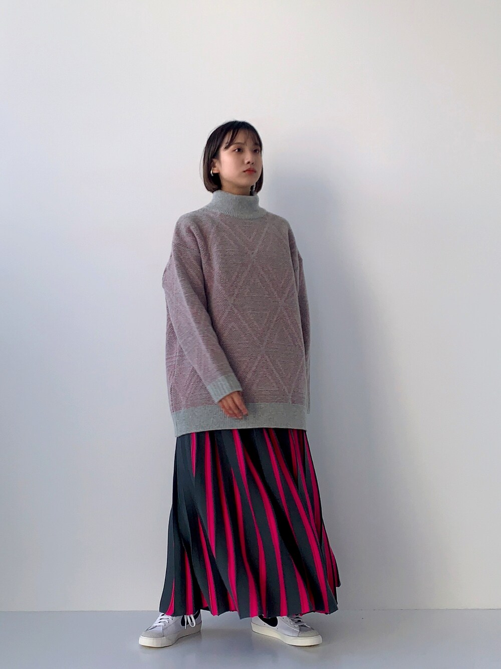 TOMOKOのニット/セーター「2WAYリバーシブルトライアングルモックネックニットチュニック」を使ったコーディネート