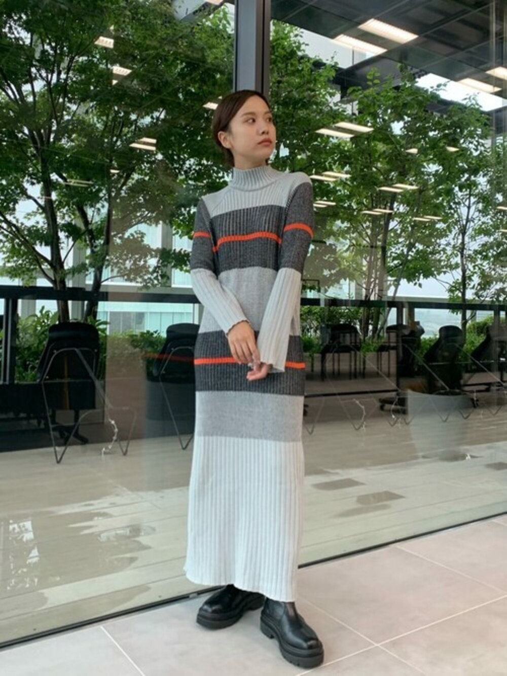 TOMOKOのワンピース「カラーブロックボーダーニットワンピース」を使ったコーディネート