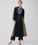 切り替えが体系をカバーしてくれるワンピースです。ポケットもついているところも嬉しいポイントです。ジップが上下から開けられるので羽織のようにも着られます。