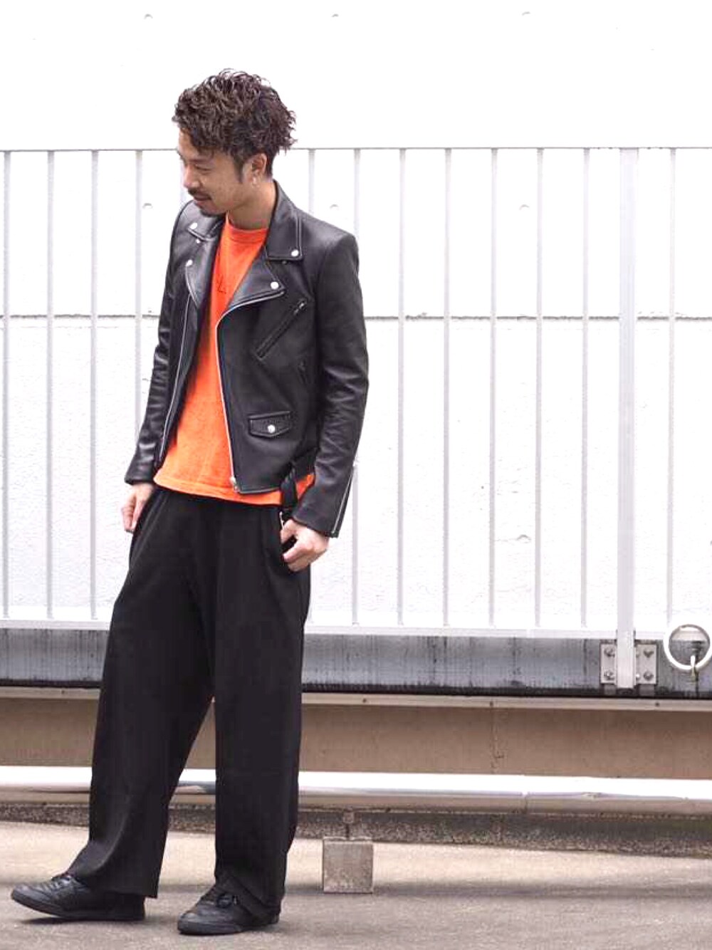 漢を上げるタブルのライダース😎 ビシッと締めながらもインナーはオレンジで爽やかに刺す👌