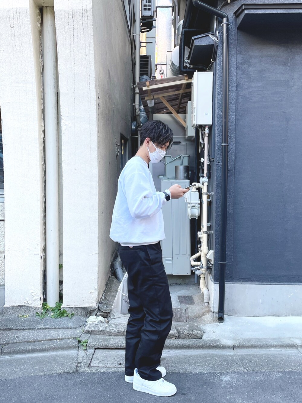 見た目を簡潔に 白スウェットはインスタグラマープロデュースのもの。