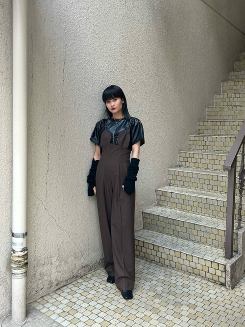 スタイルがかなり綺麗に見えるfetcioのロンパースです。こちらを短丈のritostructureのトップスと合わせてみました。 素材感違うアイテム同士で合わせるとすごく可愛いです。ロンパースはブラの部分が取り外し可能となっているので、ハイウエストのパンツに変わります!色々な着回しができます!