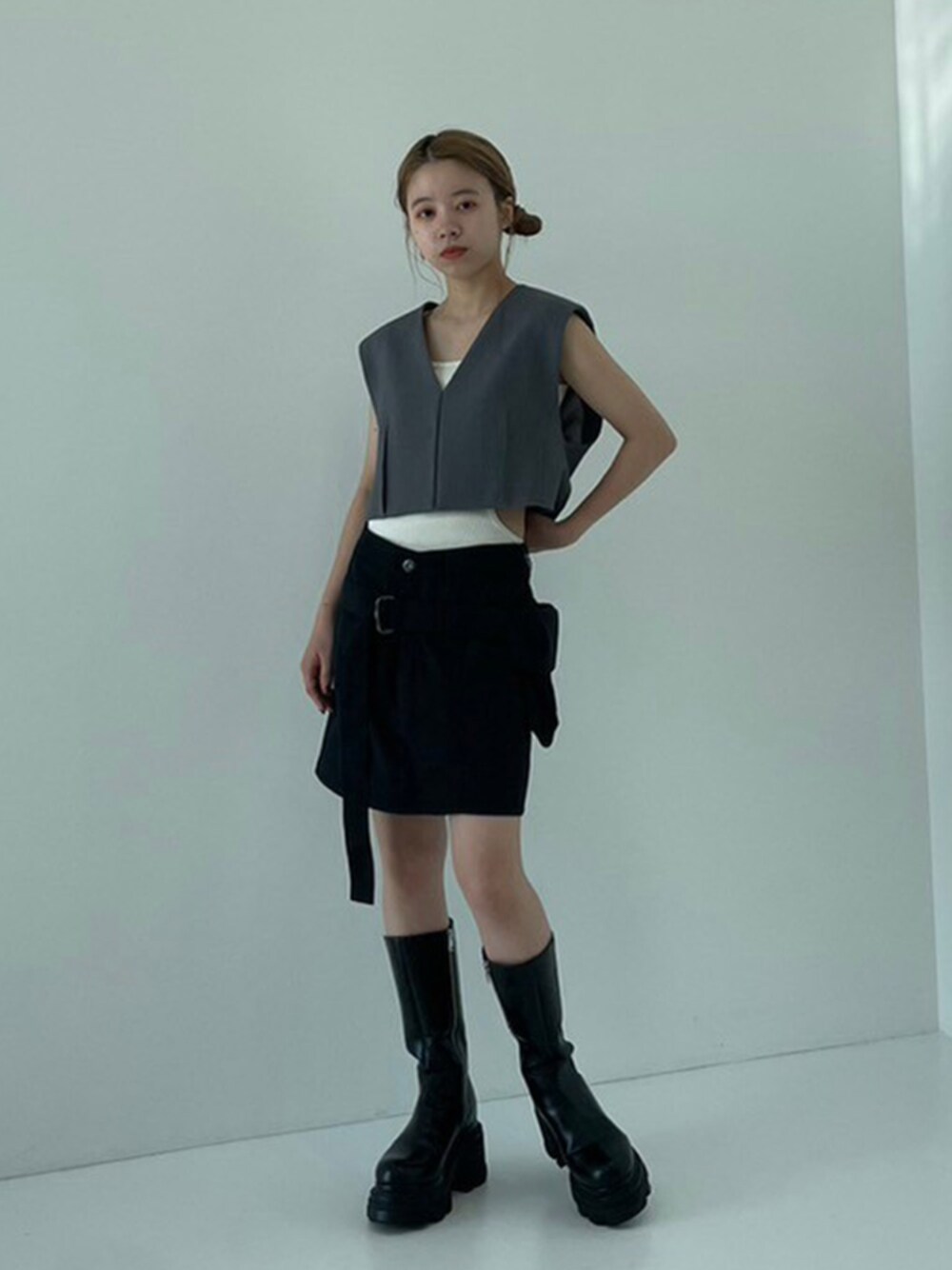 STUDIOUS STAFF(STUDIOUS WOMENS)のベスト「【STUDIOUS/ステュディオス】クロップドテーラードベスト」を使ったコーディネート
