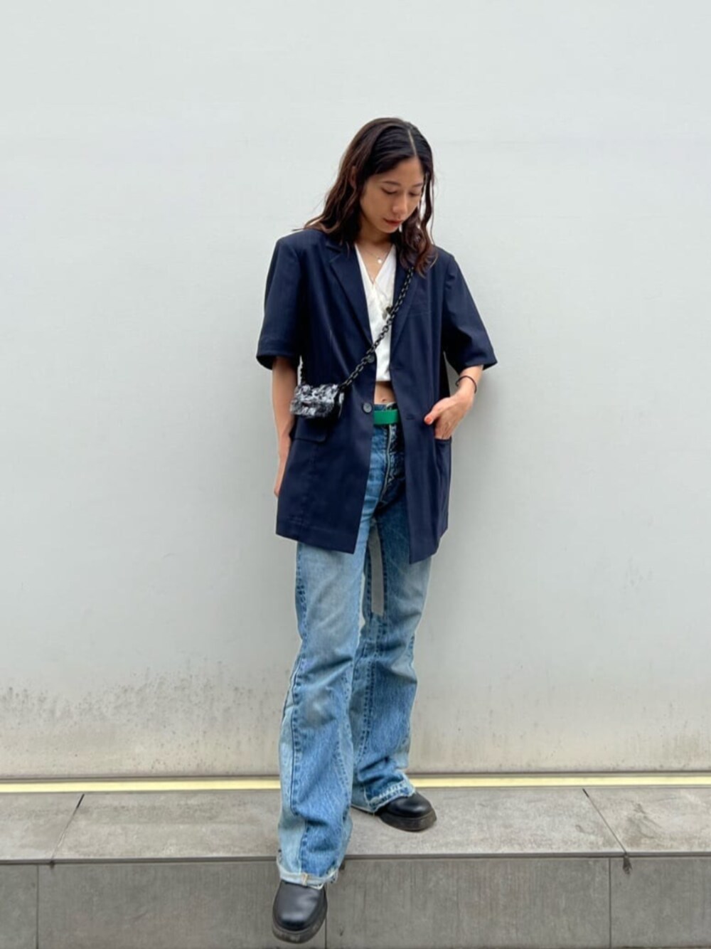 STUDIOUS STAFF(STUDIOUS WOMENS)のテーラードジャケット「【STUDIOUS/ステュディオス】ピンストライプハーフスリーブジャケット〈セットアップ対応〉」を使ったコーディネート