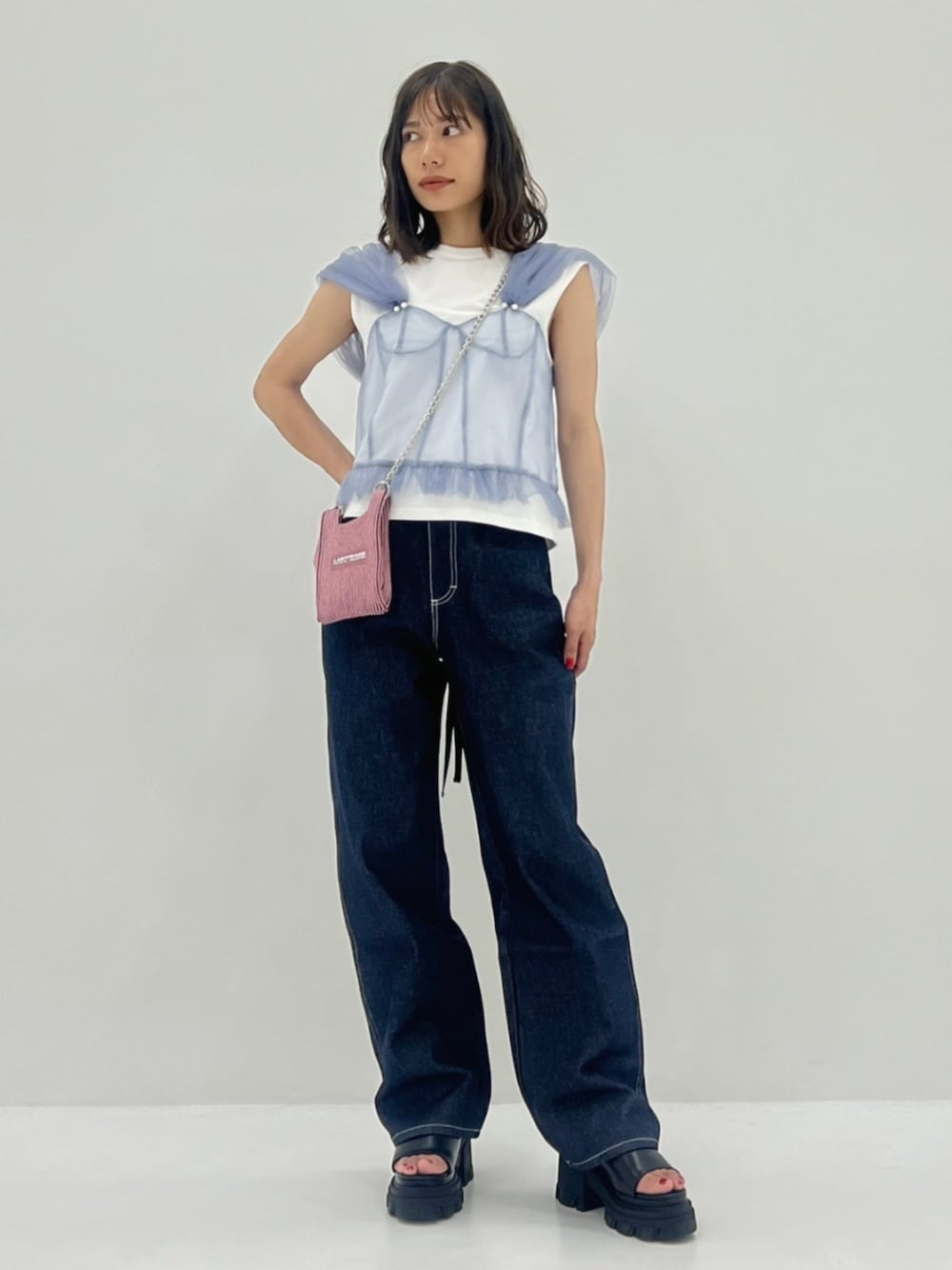 STUDIOUS STAFF(STUDIOUS WOMENS)のTシャツ/カットソー「【VIVIANO/ヴィヴィアーノ】《STUDIOUS別注》Tulle Corsert T-shirt/チュールコルセットTシャツ」を使ったコーディネート